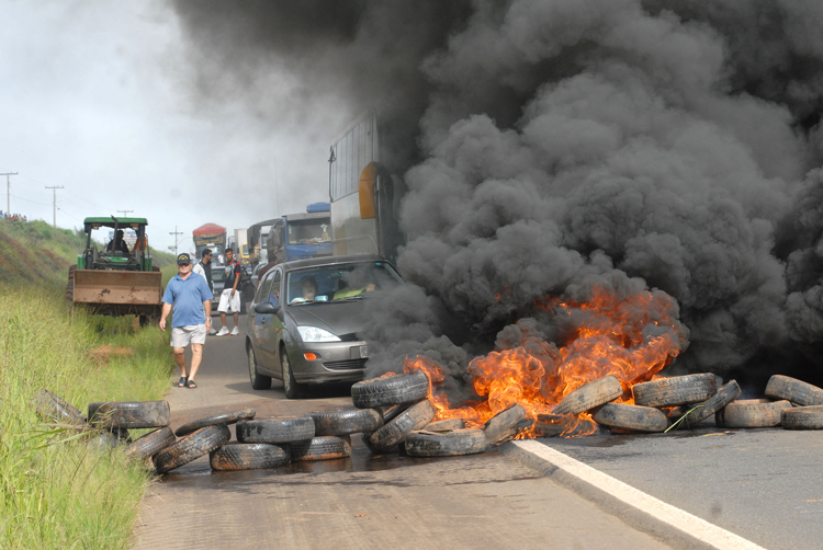 A manifestação, organizada por comerciantes, provocou engarrafamento de cerca de dois quilômetros. Os comerciantes bloquearam as pistas da rodovia com pneus e fogo.