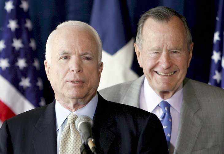 — Ninguém está mais preparado para dirigir a nossa nação do que o senador John McCain — afirmou o pai do atual presidente americano em Houston, após formalizar seu apoio ao senador. — Estou feliz por poder ajudar esse extraordinário patriota a levar as bandeiras do