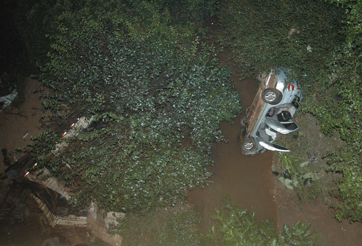 Com a colisão, um caminhão bitrem e um Scénic foram projetados para o penhasco, despencando de uma altura aproximada de 20 metros. O motorista do caminhão, Lademir Inácio Wilhelm, 49 anos, morreu no local. Parte da carga de trigo que estava no caminhão também caiu na água. A pista ficou totalmente bloqueada até por volta das 23h.
