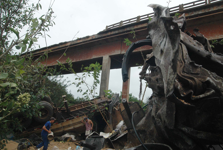 Motorista do caminhão Mercedes Benz ano 1998, Lademir Inacio Wilhelm, 49 anos, morreu no local. Ele dirigia o veículo carregado com trigo no sentido Cruz Alta-Ibirubá, quando por volta das 20h30min bateu em um caminhão Volvo ano 2001, que seguia em sentido contrário, e caiu da ponte.