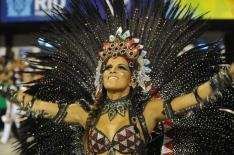 No mesmo momento, a rainha de bateria Renata Santos mudou de fantasia e passou de cacique para onça. A parada fez um grande diferencial para a escola no quesito inovação.