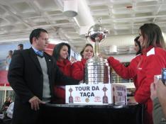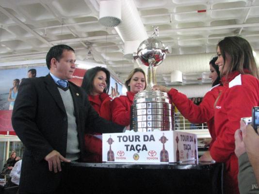 Não é a Larissa Riquelme, mas veio do Paraguai e é tão cobiçada quanto a musa da última Copa do Mundo. Chegou a Porto Alegre às 10h20min desta segunda-feira, sob esquema de segurança armado, a taça da Libertadores da América. O troféu foi escoltado por pelo menos 10 batedores da Brigada Militar e da EPTC desde a pista do Aeroporto Salgado Filho, e faz um tour pelas ruas da capital gaúcha até o Beira-Rio.