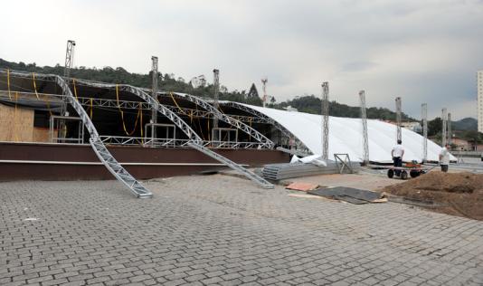 A Vila Germânica, que será palco da 27ª Oktoberfest, em Blumenau, passa atualmente por obras para preparar a estrutura da festa. A organização garante que os preparativos estão dentro do cronograma. O Biergarten ainda está sendo montado e os três pavilhões já começaram a receber a decoração.