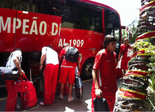 Com pouca presença de torcedores, a delegação do Inter B chegou por volta das 15h20min desta segunda ao Dall'Onder Grande Hotel, em Bento Gonçalves. Durante o período da tarde, os jogadores farão o primeiro treino da pré-temporada. Serão 10 dias de preparação intensa para o Gauchão Coca-Cola.