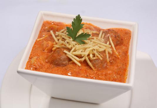 1. Em uma panela, refogue a cebola no óleo e no conhaque. Junte o molho de tomate, o ketchup e as almôndegas. Cozinhe, mexendo de vez em quando com cuidado, por 45 minutos ou até as almôndegas ficarem macias.