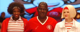 Principal atração do quarto dia de desfiles do Donna Fashion Iguatemi, o vencedor do BBB 10 Marcelo Dourado comandou a apresentação da marca do Inter na tarde deste sábado. Colorado desde criança, o gaúcho desfilou pelas linhas Inter Red e Inter Sport. A linha Escurinho, para crianças, levou o ídolo colorado à passarela. Duas modelos auxiliaram o ex-jogador (foto abaixo), que foi aplaudido de pé pela plateia.