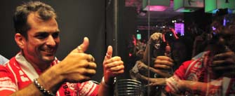 Após o desfile, Dourado (foto acima) conversou com a imprensa e ouviu calorosos gritos do público que o observava pelo outro lado do aquário: Ah, eu sou gaúcho!