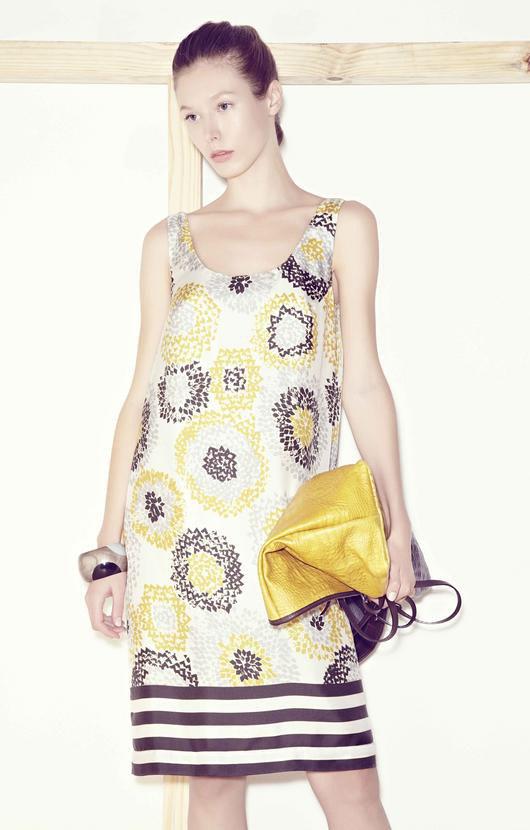 Para a estação quente, as peças da Huis Clos vêm em cores como gerânio, nude, off white, amarelo açafrão e cinza. As saias e os vestidos aparecem nos mais diferentes comprimentos, tanto acima do joelho quanto midi e longo. Destaque para a estamparia, com motivos orientais que vão de florais a paisagens.