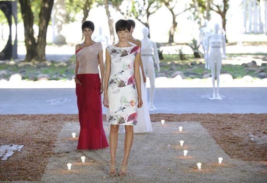 Na cartela de cores, variações de brancos, areia, gelo com pitadas de lima, tons de rosa e pink. Detalhes nas costas, interferências em vinil, acabamentos desfeitos, estruturados e "desabados" são pontos fortes, assim como tecidos naturais, a exemplo da seda e do linho.