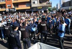 Por volta das 13h30min, um grupo de torcedores uruguaios que estava na Avenida Sarandi começou a jogar pedras em carros no lado brasileiro e na Brigada Militar (BM).