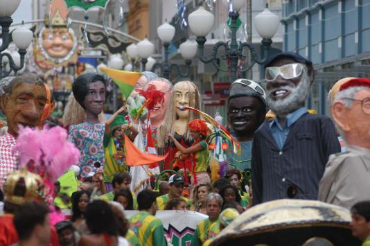 Os foliões mais afoitos se posicionaram entre os 20 bonecos das personalidades homenageadas e o carro de som. O restante seguiu o caminhão que levava o puxador dos sambas, que sequer precisava se esforçar para o público pular. Diante de tanta animação poucos perceberam a chuva que caiu no início do percurso.