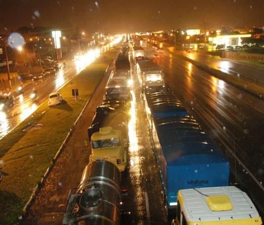 Na BR-101, em Palhoça, na Grande Florianópolis, há dois trechos interditados. No km 225,5, a rodovia está fechada desde às 15h por causa de um adensamento na pista. Não há previsão de liberação.