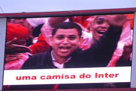 Neste domingo, o Inter aproveitou o novo placar eletrônico do Beira-Rio para realizar uma promoção que surpreendeu os torcedores no intervalo da final da Taça Fábio Koff. Pelo sistema de som, um locutor conclamou os sócios a ficarem de pé, com os braços para cima.