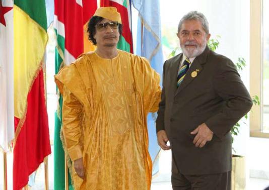 O líder líbio Muamar Kadafi e Lula na abertura da Cúpula da União Africana