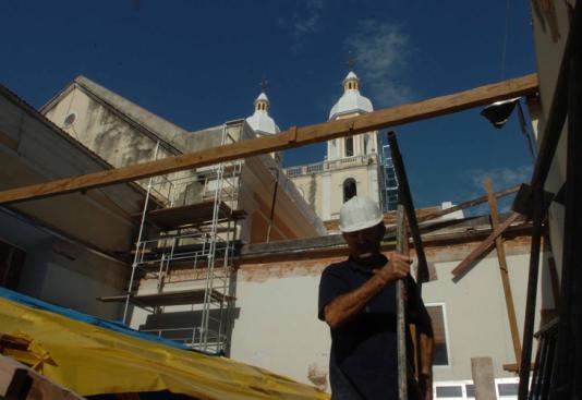 Na seqüência, será feita a recuperação da fachada e torres, pintura externa e a troca do piso externo, além da instalação do novo projeto de iluminação, desenvolvido por