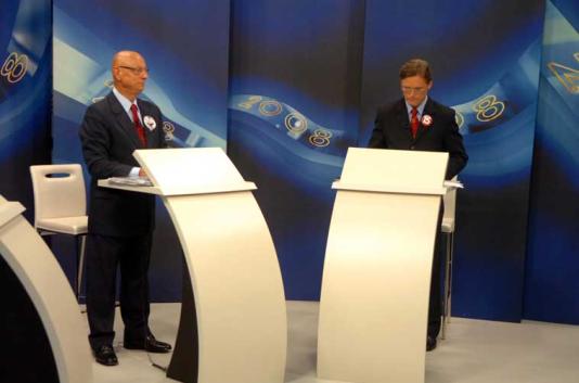 O debate da RBS TV entre os candidatos à prefeitura de Florianópolis, na noite desta sexta-feira, encerrou oficialmente a campanha política na cidade. O último encontro entre os candidatos à prefeitura da Capital, Dário Berger (PMDB) e Esperidião Amin (PP), antes da votação de domingo durou uma hora e meia.