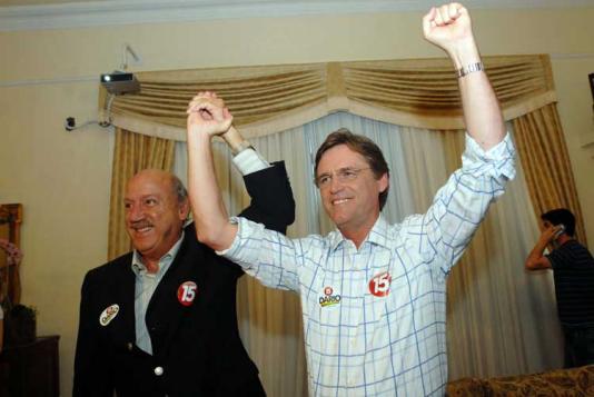 O governador de Santa Catarina, Luiz Henrique da Silveira (E), comemorou com Dário Berger a vitória nas urnas