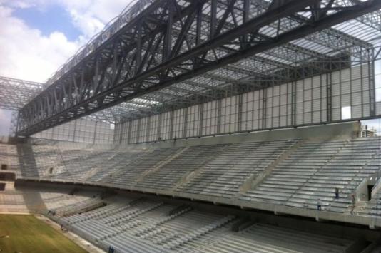 Cerca de 1,1 mil funcionários trabalham em tempo integral nas obras no estádio, que nesta semana teve avanços importantes, como a conclusão na instalação do gramado, além da quase finalização na cobertura. Outro ponto foi a instalação das cadeiras, que chegam a 7 mil unidades colocadas — a Fifa exige que até o dia 18 tenham sido instalados, pelo menos, 15 mil assentos.