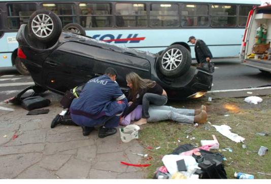 Um carro capotou ao colidir com outro veículo na Avenida Osvaldo Aranha, no bairro Bom Fim, em Porto Alegre, por volta das 7h30min desta segunda-feira. Três jovens ficaram feridas e foram encaminhadas para o Hospital de Pronto Socorro (HPS) da Capital.