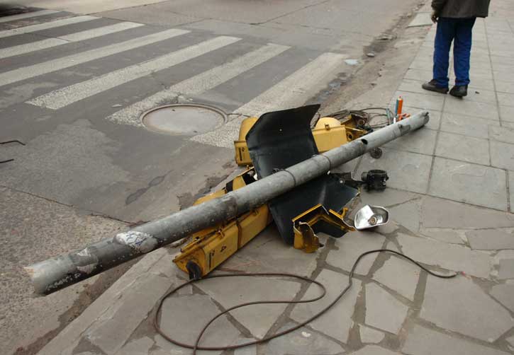 Para tentar desviar de um Uno que cruzava a Avenida Assis Brasil, na zona norte de Porto Alegre, o motorista de um ônibus da linha Lindoia teve de jogar o coletivo para cima do canteiro central da via, derrubando um poste com semáforo por volta das 11h desta sexta-feira. O automóvel acabou atingido na dianteira. O trânsito ficou congestionado na região.