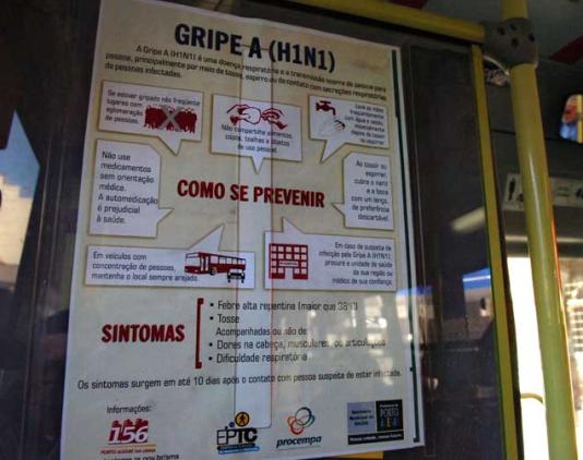 O pedido para informar os usuários sobre como se proteger da gripe A foi feito pela Secretaria Municipal da Saúde, que elaborou os cerca de 2 mil cartazes que serão enviados para a EPTC na segunda-feira.
