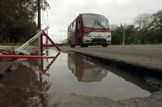 Um buraco na pista da direita da Avenida Bento Gonçalves, no bairro Agronomia, em Porto Alegre, atrapalha o trânsito e causa congestionamentos nos horários de pico, conforme relato de motoristas. A via tem três faixas, mas diminui para duas no local da falha no asfalto, situado em frente à Faculdade de Agronomia da Universidade Federal do Rio Grande do Sul (UFRGS). O estreitamento de pista causa redução de velocidade, gerando os congestionamentos.