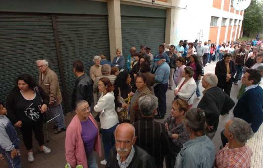 Uma carroça carregando um homem em uma cadeira de rodas parou em frente ao postão do IAPI, na zona norte de Porto Alegre, no início da manhã desta quinta-feira. Rafael Pacheco Barbosa, 27 anos, ajudou seu tio Vladimir Dutra Pacheco a desembarcar do precário veículo e rumou à entrada do posto. Lá já havia dezenas de pessoas que aguardavam atendimento. O estabelecimento havia sido fechado pelos seguranças do local. Eles disseram ser um protesto contra suposto atraso no pagamento de salários.