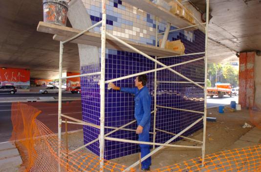 O trabalho deve ser finalizado em até três meses, segundo o encarregado da ATM Antonio Ramos. Os quatro pilares ganharão revestimento em cerâmica colorido. Hoje, o horário da obra é das 7h30min ao meio-dia e das 15h às 17h10min.