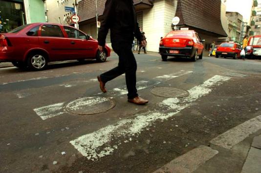 O tempo liquida aos poucos a faixa de segurança na movimentada esquina das ruas Riachuelo e Marechal Floriano, no centro de Porto Alegre. A situação já tinha sido denunciada por moradores e comerciantes da região em 10 de novembro do ano passado. A Empresa Pública de Transporte e Circulação (EPTC) não deu prazo para repintar a faixa naquela época. Nesta quarta-feira, porém, informou que a repintura está no cronograma e deve ser concretizada até o final da semana que vem.