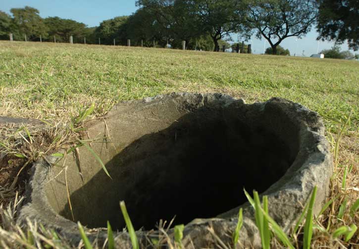 Quem passa perto de um buraco no gramado do Parque Maurício Sirotsky Sobrinho, em Porto Alegre, não tem ideia do perigo que corre. Somente ao se aproximar e olhar para dentro é que se percebe a profundidade do buraco, situado em frente à Avenida Loureiro da Silva, entre a Câmara Municipal e a Avenida Beira-Rio.