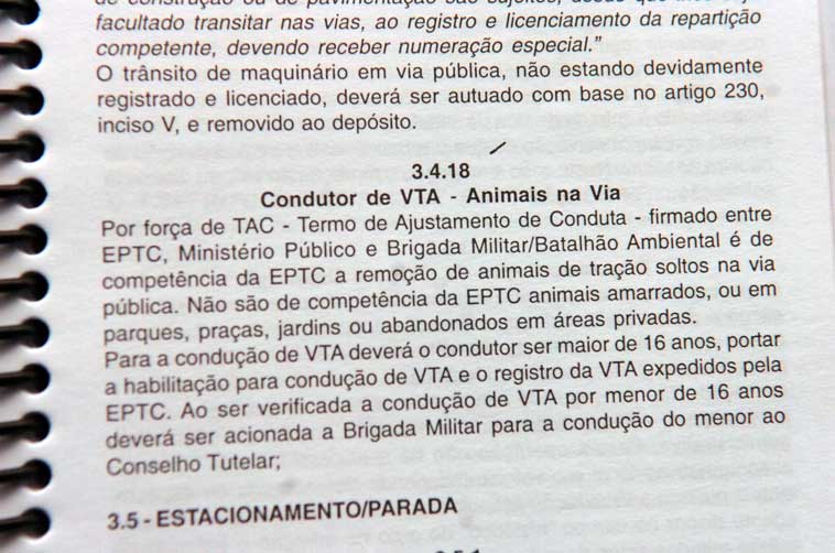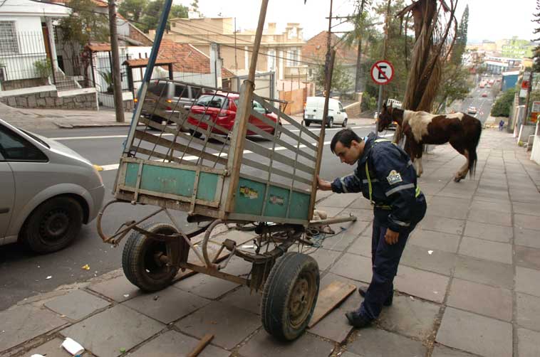 A EPTC ainda verificaria se o adolescente foi flagrado anteriormente dirigindo uma carroça. Caso isso se comprove, o veículo será definitivamente recolhido, podendo ser liberado somente com medida judicial, de acordo com o agente de trânsito José Roque Kunrath, que atua na fiscalização de veículos de tração animal. Se ninguém reivindicar o cavalo no período de três meses, ele vai a leilão, explicou Kunrath.