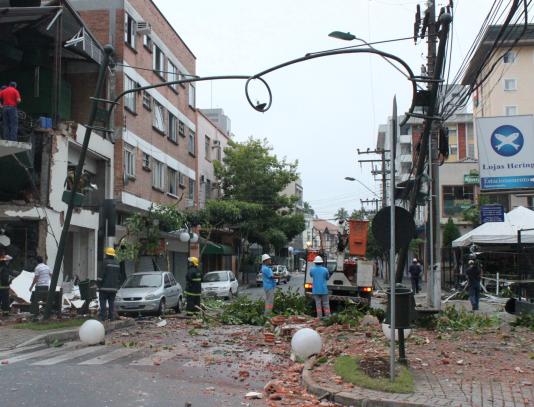 A cozinha do Buffet Curt Hering, restaurante anexo ao prédio das máquinas, foi destruída com o impacto. Entre as mesas de refeições, tijolos e poeira foram lançados por uma fenda de 2 metros de diâmetro que se abriu entre a parede e o teto. Acima do restaurante, há nove apartamentos residenciais.