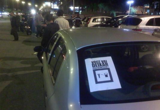 Até às 19h, cerca de 80 pessoas participavam com seus carros. Alguns deles exibiam nos vidros o slogan da campanha "Você vai deixar isso acontecer?", com o desenho de um frentista assaltando o consumidor com a bomba de gasolina. Os manifestantes distribuíram cartazes afirmando que a população tem de fazer algo contra o aumento e exercer seu direito de protesto.