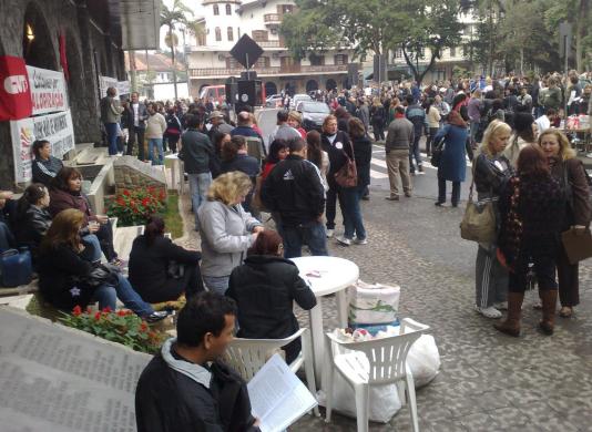 Mesmo com chuva, na manhã deste terça-feira, os servidores organizaram uma passeata pelas principais ruas do Centro de Blumenau.