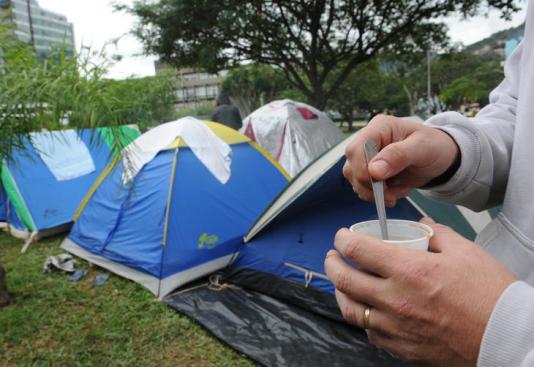 Professores estão acampados em frente à Assembleia Legislativa e à Secretaria de Educação