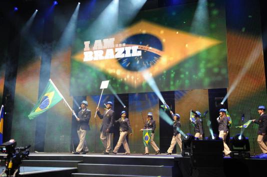 São quase 944 alunos de 51 países, competindo em mais de 46 profissões — de automação a terapias de beleza. Três estudantes do Senai de Joinville disputam em duas profissões. Andre Peripolli e Leandro Duarte Machado fizeram provas de robótica móvel e Natã Barbosa fez atividades de webdesign.
