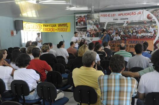 Uma assembleia na manhã desta segunda-feira oficializou o início da greve dos professores da rede estadual de ensino em Joinville. Cerca de 45 professores participaram da reunião, realizada na sede do Sindicato dos Mecânicos, no Centro da cidade, para organizar os comandos de greve.
