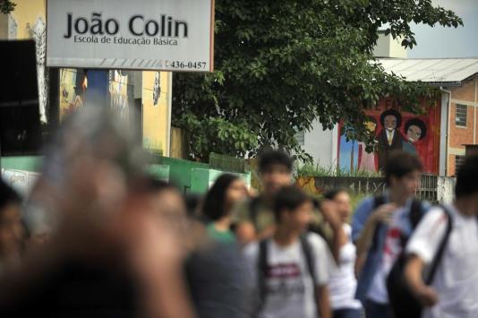 Para demonstrar apoio à greve dos professores em Joinville, cerca de 50 alunos da escola estadual João Colin, no bairro Itaum, realizaram uma manifestação nesta segunda-feira. Com cartazes nas mãos, eles planejavam reclamar também da demora na entrega de passes de ônibus para aqueles alunos que moram a mais de três quilômetros da escola. Eles já tinham feito protesto na semana passada.