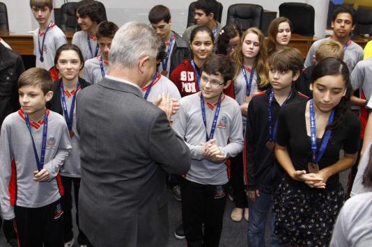 Uma homenagem digna, para aqueles pequenos que fizeram a diferença para Joinville. Com o auditório totalmente lotado, os alunos que participaram da Olimpíada Brasileira de Matemática das Escolas Públicas e que trouxeram medalhas para casa, foram lembrados na manhã desta quarta-feira, em uma cerimônia na Câmara de Vereadores.