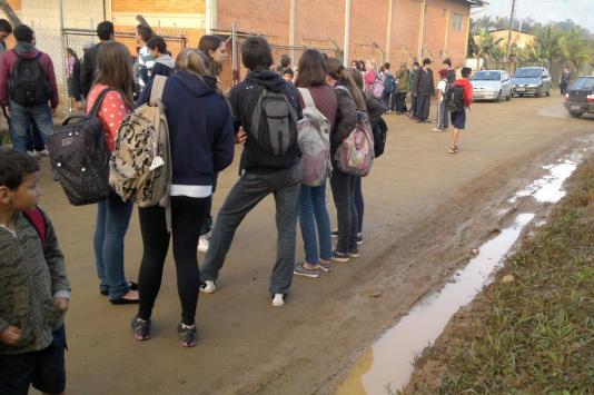 Segundo a funcionária da escola Angelita Bublitz, o protesto pede mais segurança no local e a pavimentação da Rua Wilhelm Weise. O ato começou perto das 7h. O grupo está posicionado em frente à unidade com cartazes pedindo melhorias.