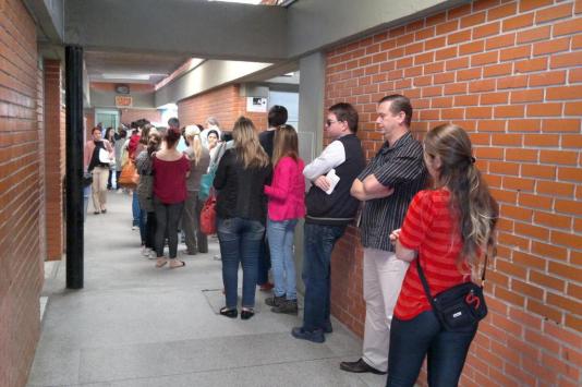 Mara Rúbia Meyer, 42 anos, chegou ao pátio do Cedup Hermann Hering às 8h de sexta-feira. Era a primeira na fila com 218 pessoas – número até as 19h de domingo à noite – que guardavam um lugar para conseguir uma vaga no 1º ano do Ensino Médio na escola técnica que funciona em cooperativa entre Estado e pais, com mensalidade de R$ 145 por aluno. No total, há 300 vagas. A analista financeira justifica o esforço em uma explicação que pode ser estendida a todos os pais: