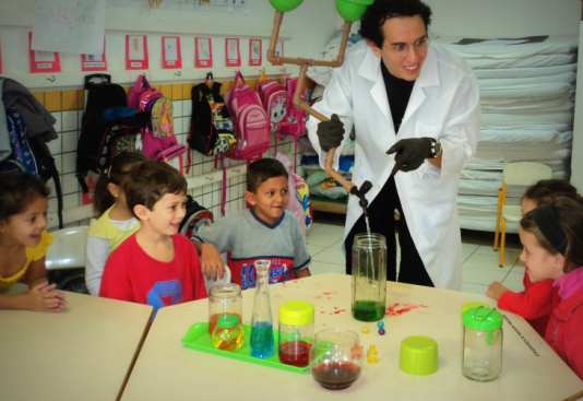 Encenando vários personagens, o professor de Educação Física foi um dos vencedores. O educador trabalha o desenvolvimento motor das crianças através da caracterização de personagens, como o “Homem Aranha”, que ensinou os pequenos a passarem por uma teia feita com elásticos, e o Policial, que incentivou a prática de exercícios físicos e fez a criançada fazer flexões.