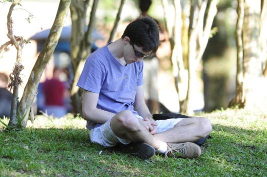 William Esperandio, 21 anos, candidato ao curso de Engenharia de Controle e Automação, sentou na grama de pernas cruzadas, com expressão de concentração.