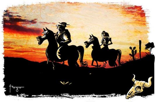 Mas o Tenório — seu melhor amigo, companheiro de estância e ligeiro que só ele — atirou primeiro o laço e, num só pialo, cingiu a cintura da china, tocando-se para um local em que gozasse privacidade. Sem um fiapo de hesitação, João mirou a pontaria numa alemoa de olhos muito azuis e provocadores, seios abundantes e sotaque carregado nos erres.