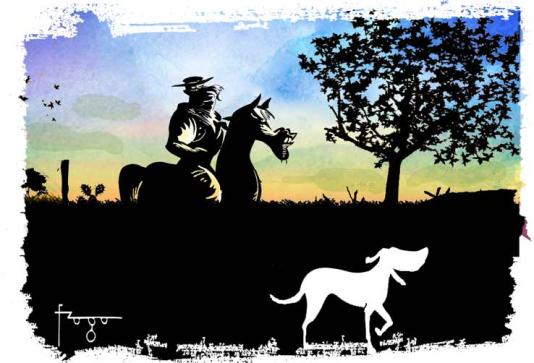 E, no repente, criou-se uma amizade como entre gente. O cusco não desgruda de João em momento algum. Seja nas desgastantes tropeadas, seja nas horas de folga, fica ele ali, ao pé do seu dono, observador atento de seus movimentos. E na suposta iminência de qualquer perigo ao peão, fica o cusquinho a rosnar, a latir, a enfurecer-se até, numa comovedora gratidão, incompreensível para quem desconhece o que é lealdade.