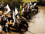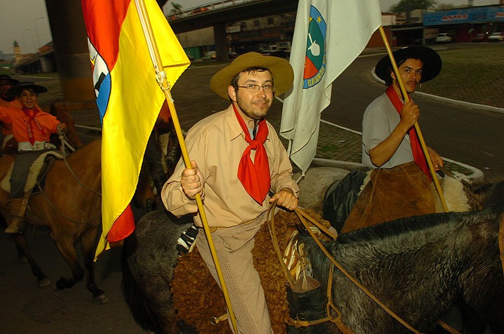 Jaisson Valim, depois de 600 quilômetros, levando a centelha com os mais de 30 integrantes da comitiva