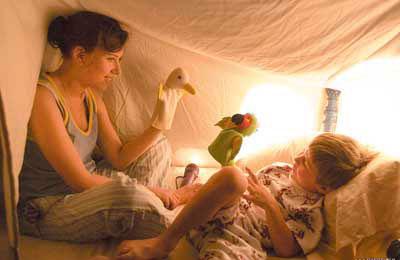 O Diário de uma Babá: Annie brinca com Grayer na cabaninha improvisada enquanto os pais do menino discutem na sala