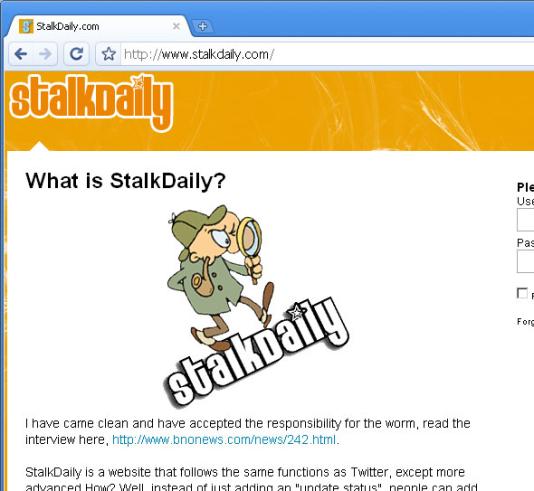 Segundo o site G1, o site malicioso, que não deve ser visitado por questões de segurança, é o Stalk Daily. Alguns usuários que tiveram seus perfis invadidos afirmam que a praga alterou informações relacionadas à biografia dos usuários (nome e endereço da página, por exemplo). Apesar de o Twitter ter divulgado já ter tomado as medidas necessárias, os usuários não devem visitar o perfil daqueles que sugerem uma visita a esse site.
