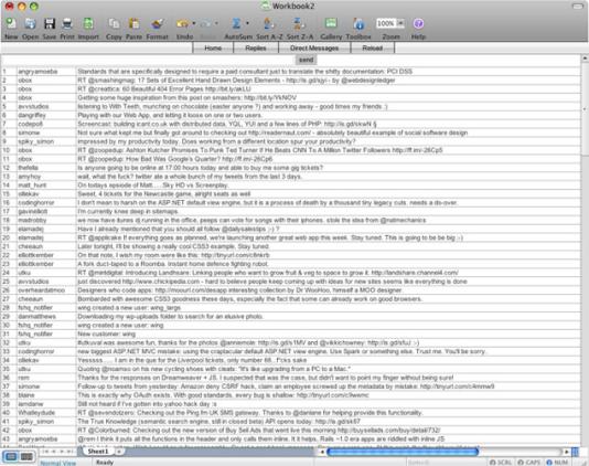 Como disfarce, o Spreadtweet gera uma planilha de três colunas