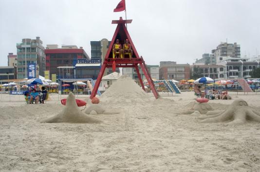 Já para chamar a atenção da criançada, os guardiões foram espertos: fizeram dos montes de areia que apoiam as bóias esculturas